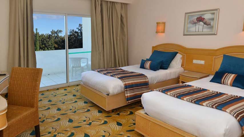 L'hôtel HAMMAMET GARDEN RESORT, vous propose 300 chambres dont 1 Suite Présidentielle et 2 Suites Juniors ainsi que des chambres familiales, toutes avec balcon, spacieuses et confortables, chauffées et climatisées, dotées d'une salle de bains, toilettes séparées, sèche cheveux, prise rasoir, téléphone avec ligne directe reliée au réseau international, T.V. couleur avec réception satellite et coffre fort individuel dans chacune des chambres.